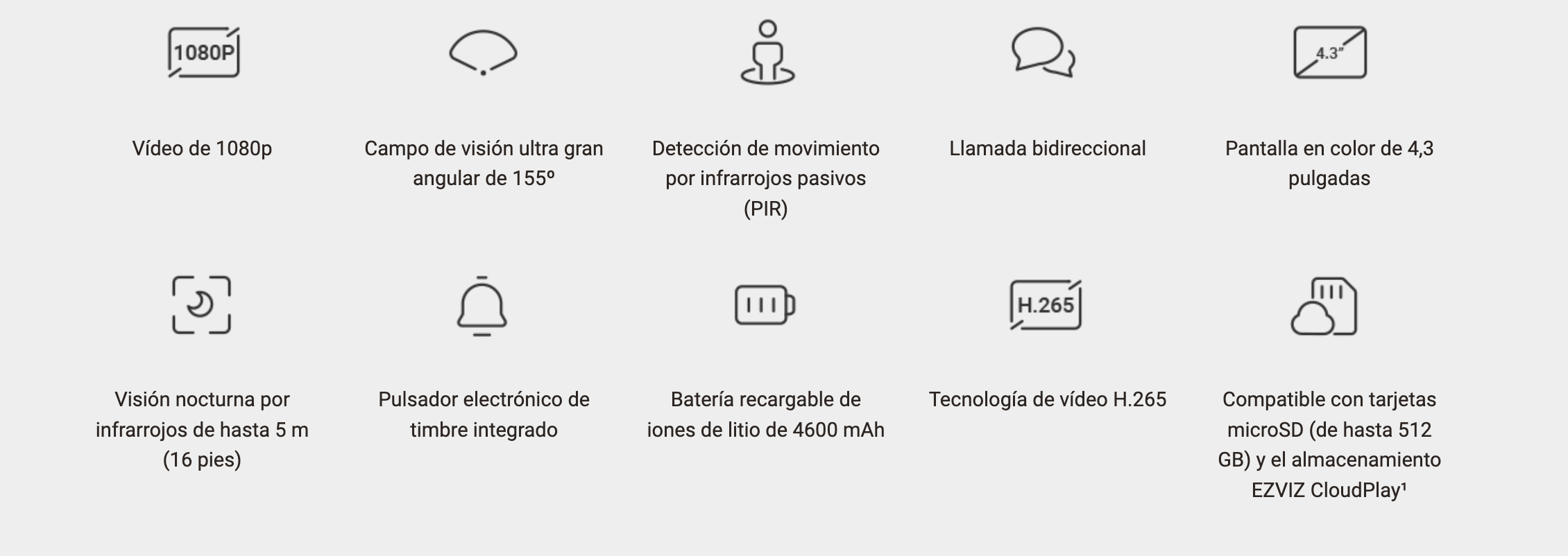 La DP2C, una cámara mirilla y timbre dos en uno, presenta un diseño moderno y elegante, así como múltiples funciones avanzadas para montar guardia en su puerta principal. Disfrutará de imágenes nítidas, funciones inteligentes y la posibilidad de ver y hablar con los visitantes a través del monitor interior en color. Además, utilice la aplicación EZVIZ en su dispositivo móvil y reciba alertas de cualquier actividad sospechosa en su puerta.