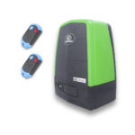 Tarjeta control con receptor para hasta 1500 usuarios, programación mediante App con conexión Bluetooth al motor, esaceleración en apertura y cierre, operado y respaldado por 2 baterías de 12V/7A incluida.